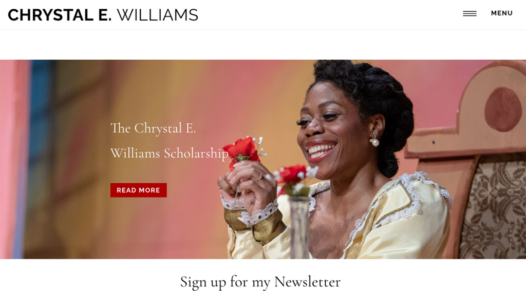 Chrystal is an opera singer managed by Astral Artists. Her website includes an easy-to-update calendar for her performances, photo galleries and a blog section to post reviews of her performances.